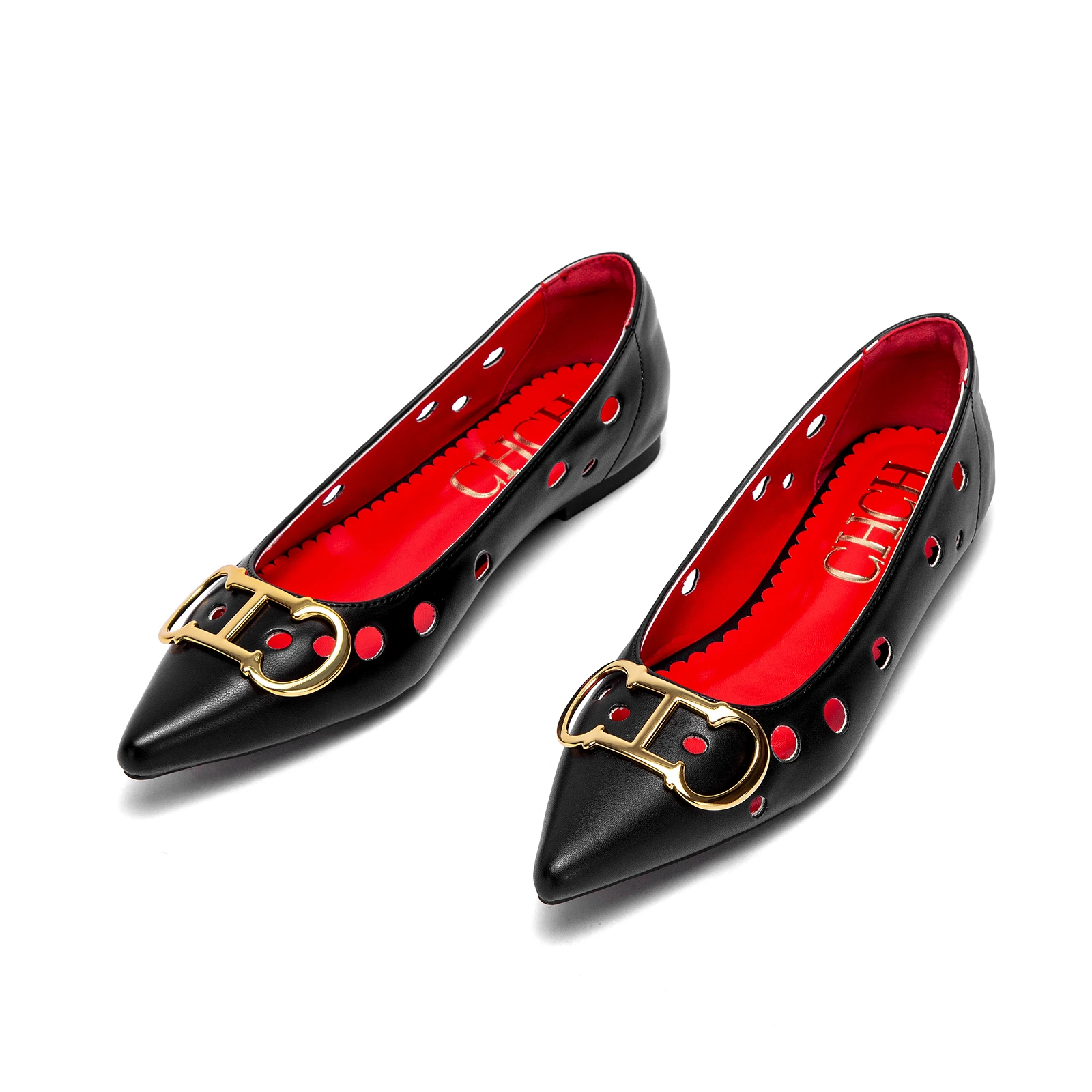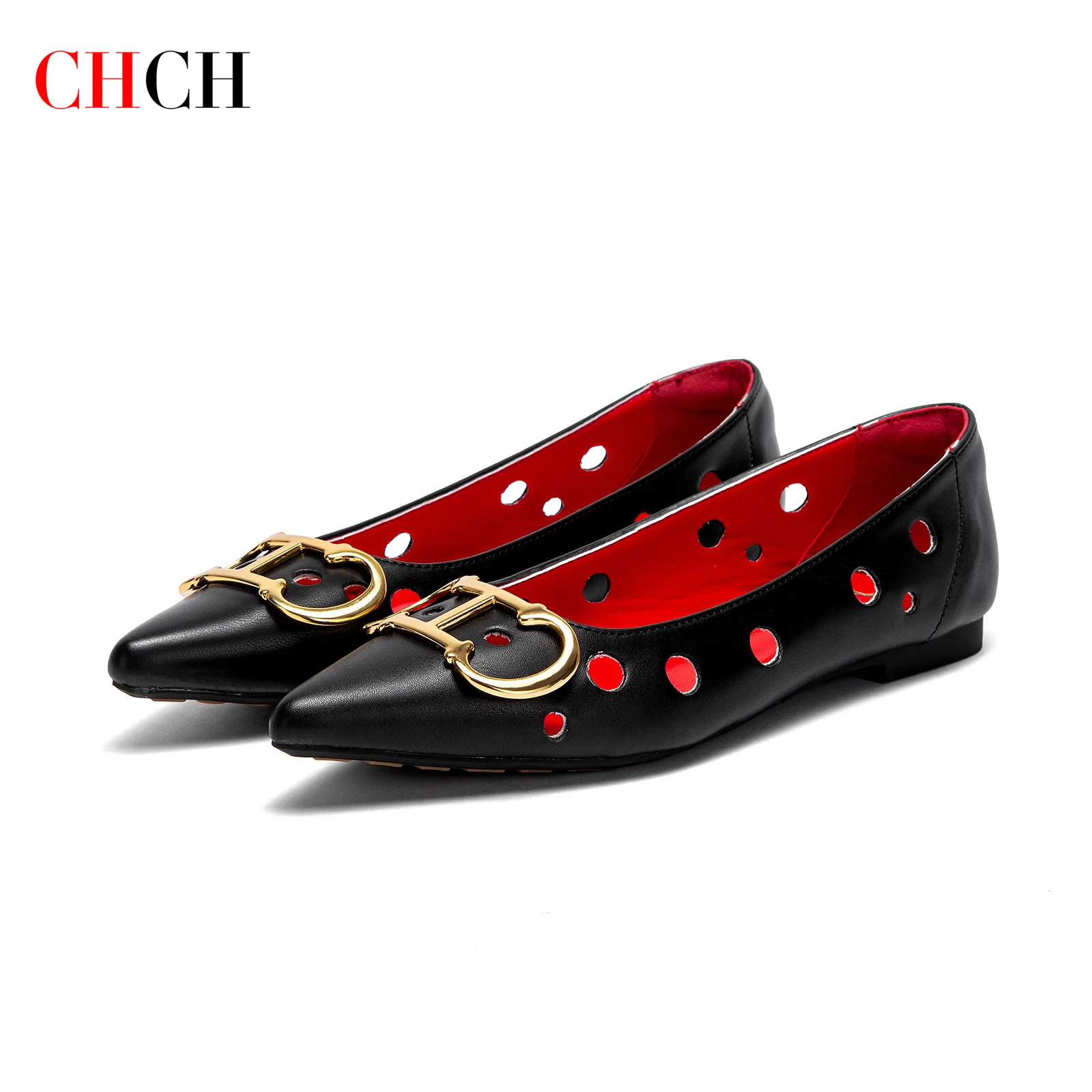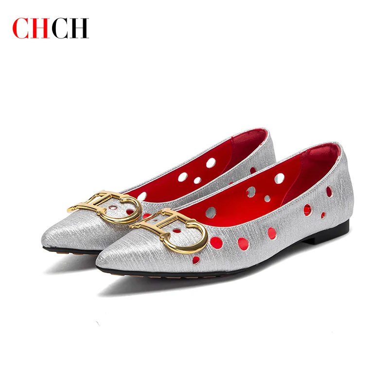 CHCH Women’s Flat Shoes 2025 New Punching Design Pointed Women’s Shoes Simple Anti slip